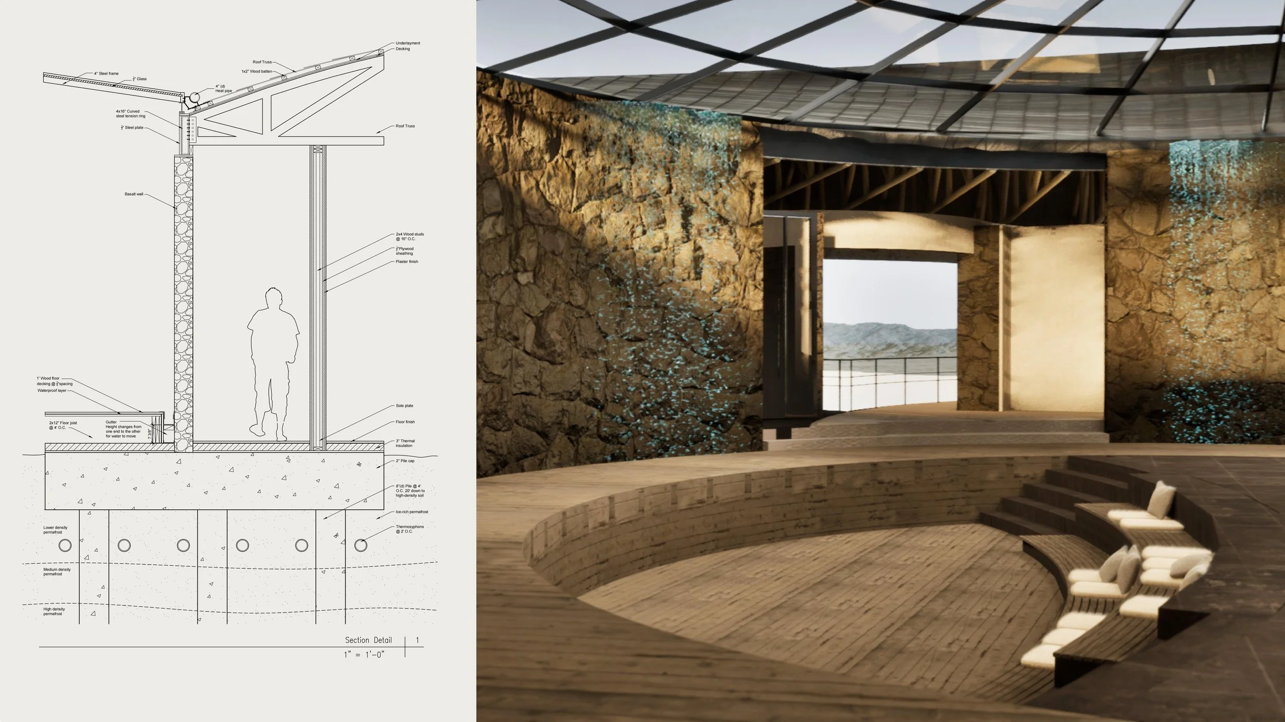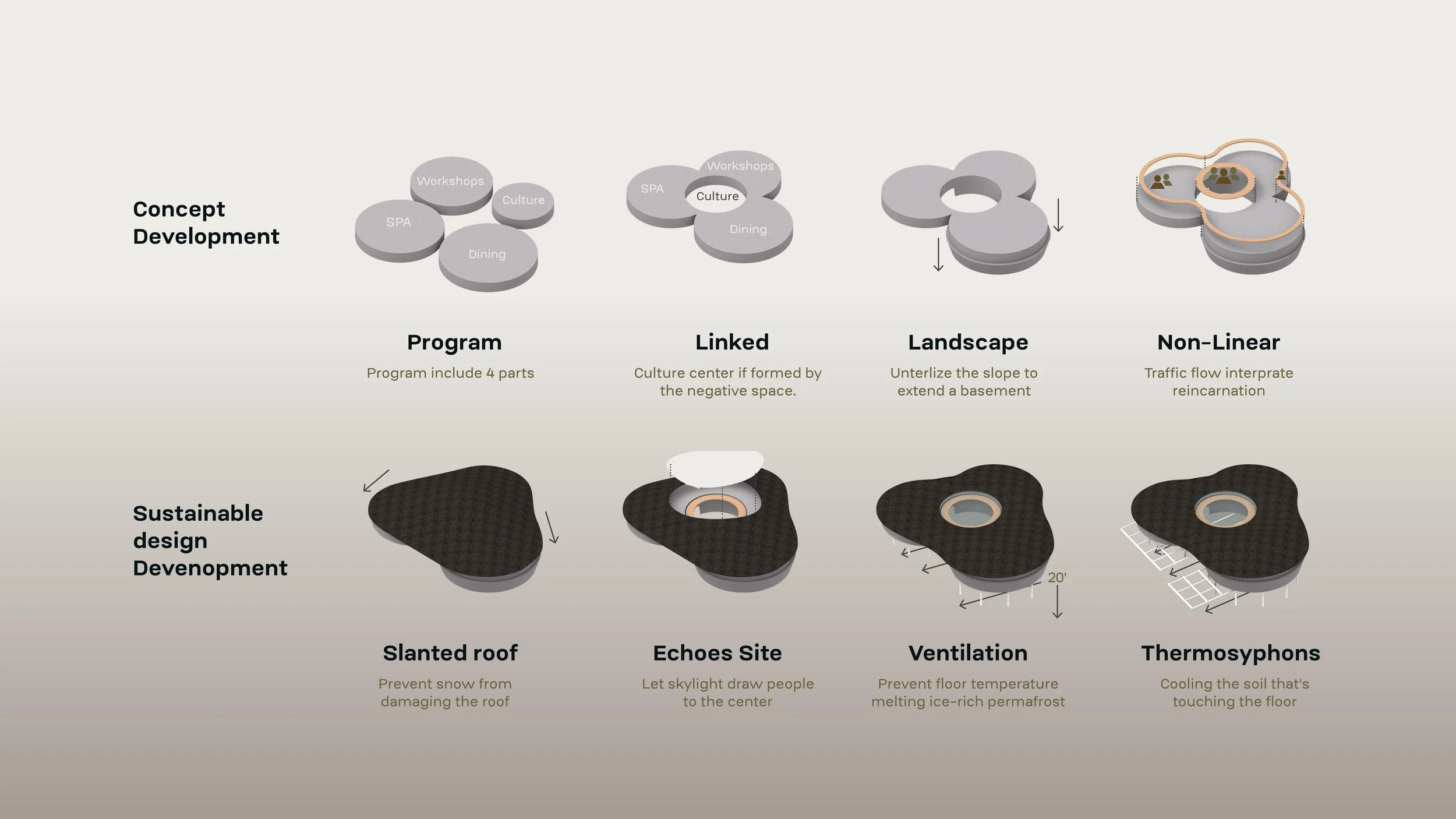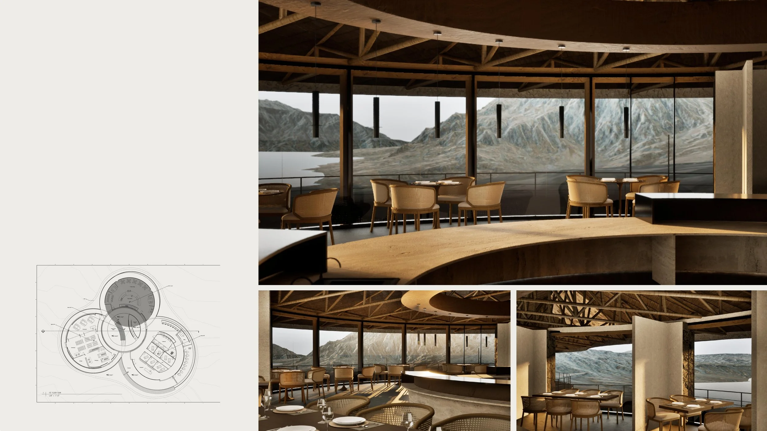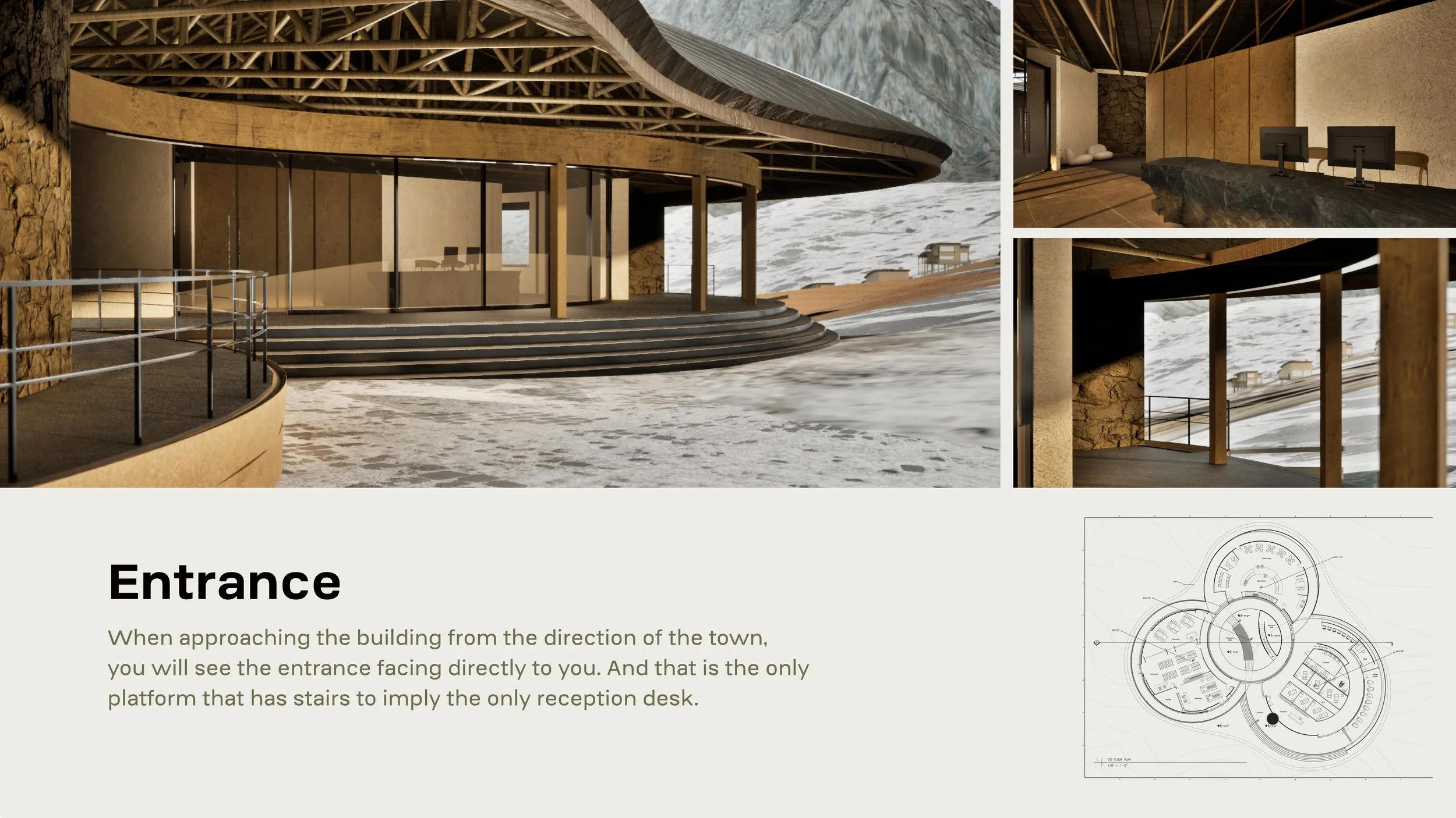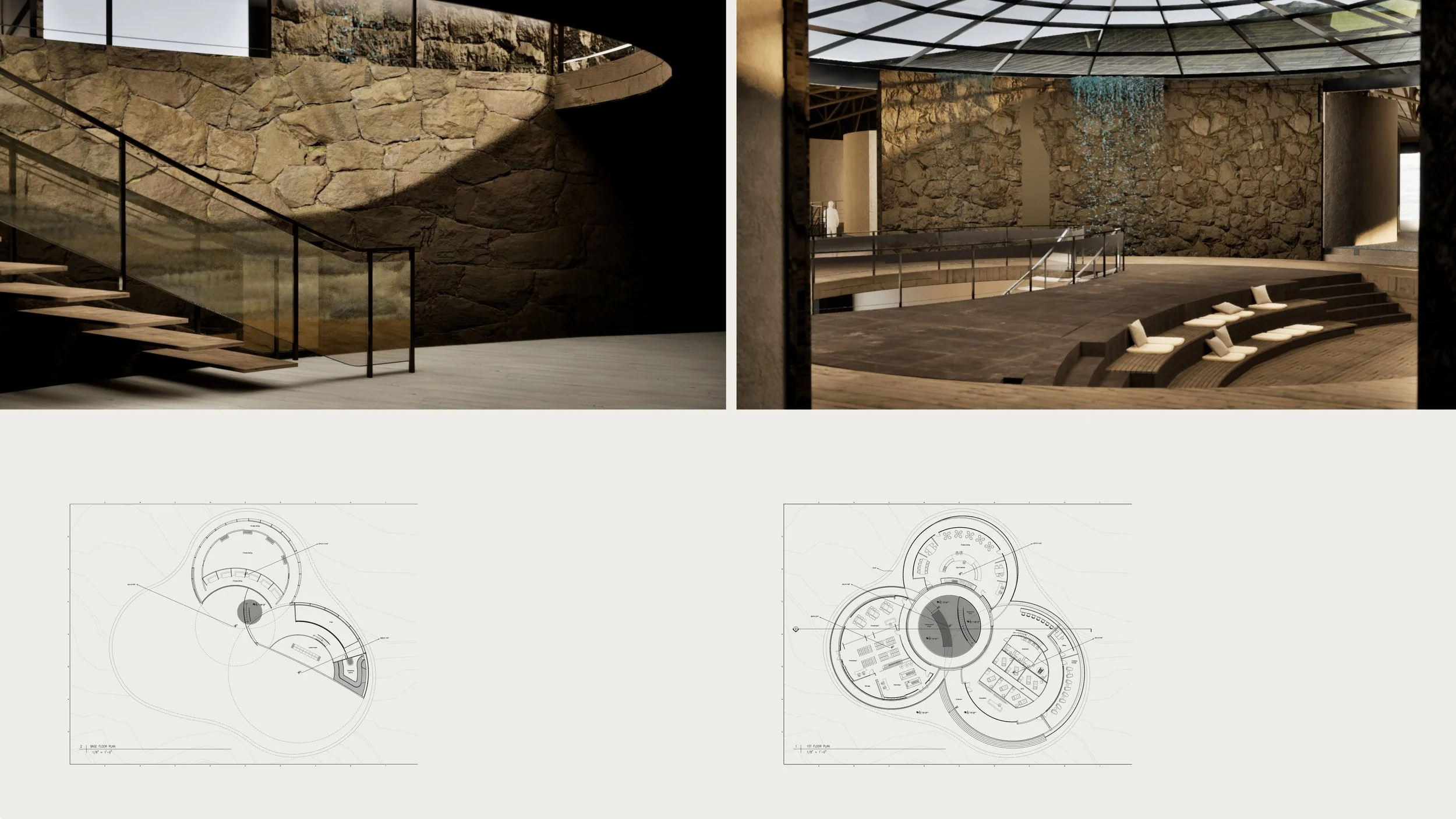This walkthrough presents Northern Whispers, a hospitality and cultural retreat in Pond Inlet shaped by Inuit wisdom. The design embraces seasonal cycles and the contrasts of the Arctic — guiding visitors from shadow to light, stillness to openness — through spaces built of stone, wood, and natural textures. Here, cultural rituals and wellness experiences intertwine, offering renewal and connection to both people and place.